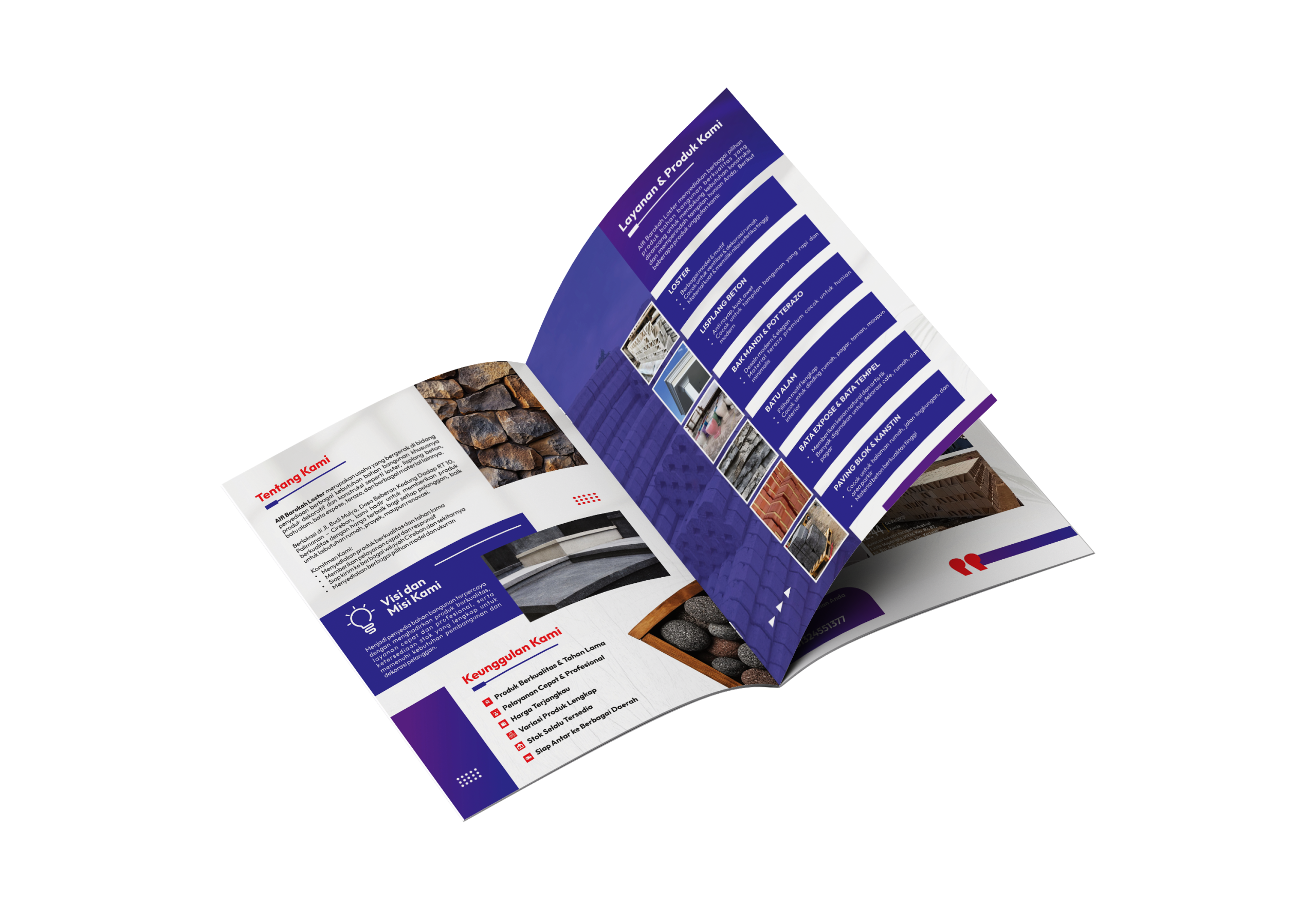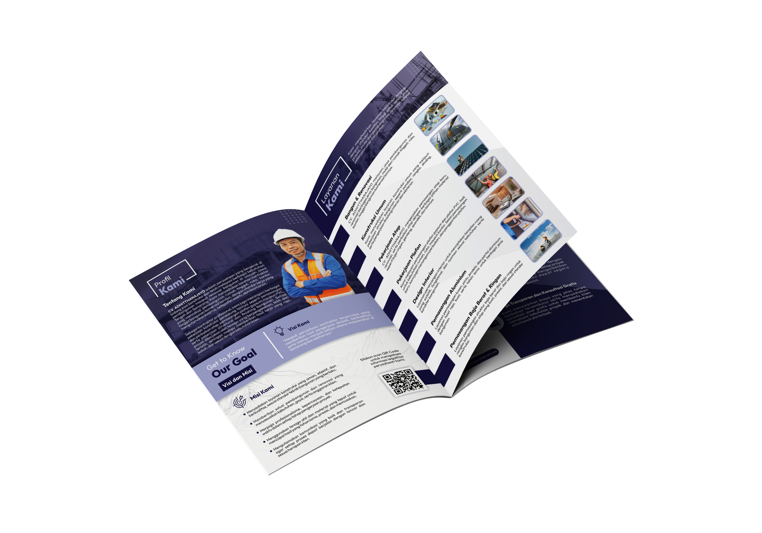 Kami membantu perusahaan membangun company profile yang profesional, menarik, dan strategis untuk kebutuhan presentasi bisnis, tender, maupun branding perusahaan. Setiap desain disusun dengan struktur konten yang jelas, visual yang elegan, serta pesan yang mampu meningkatkan kepercayaan klien dan investor.